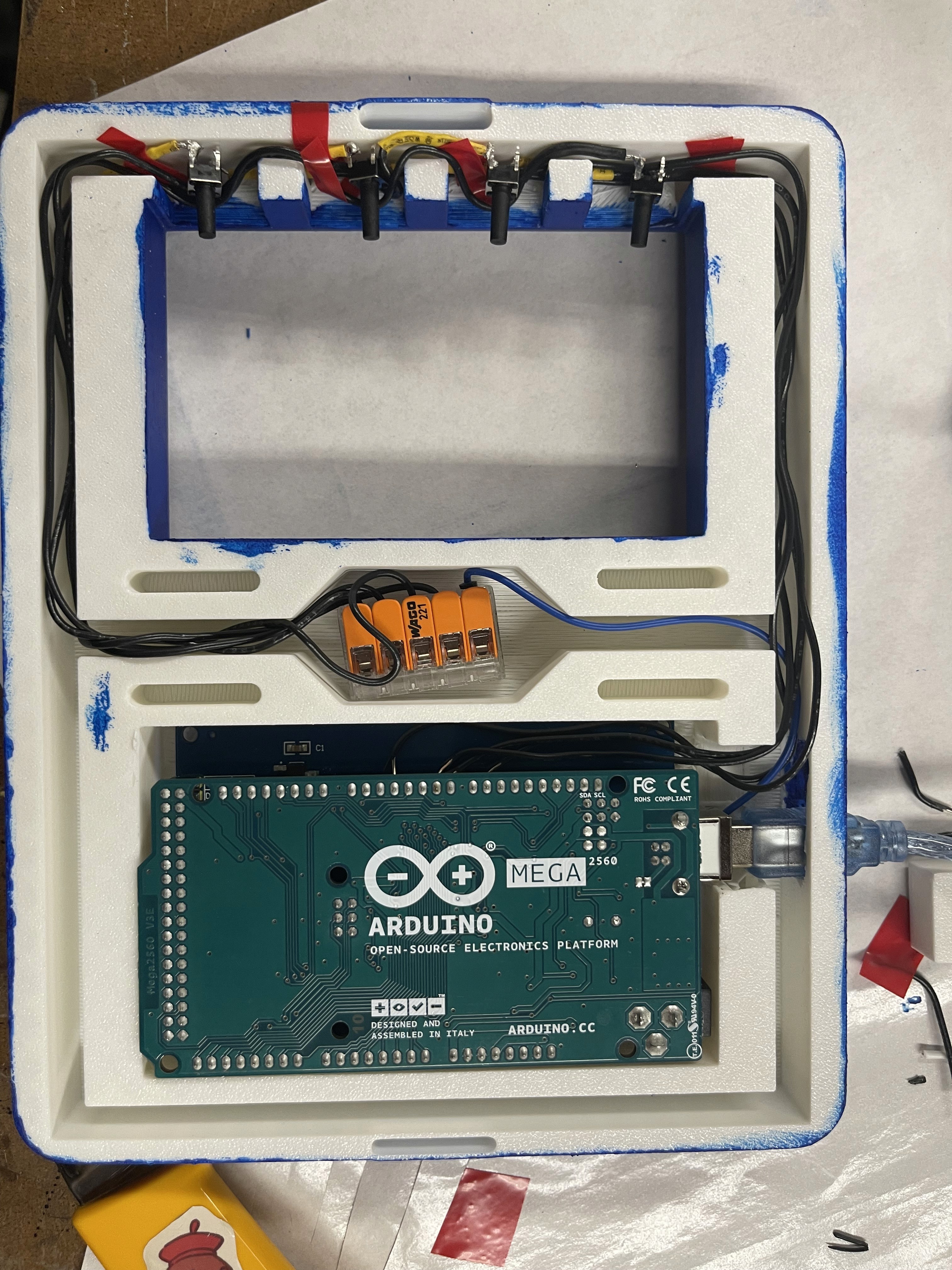 3D printed housing for free floating tactile buttons, Arduino Board, and LCD screen
